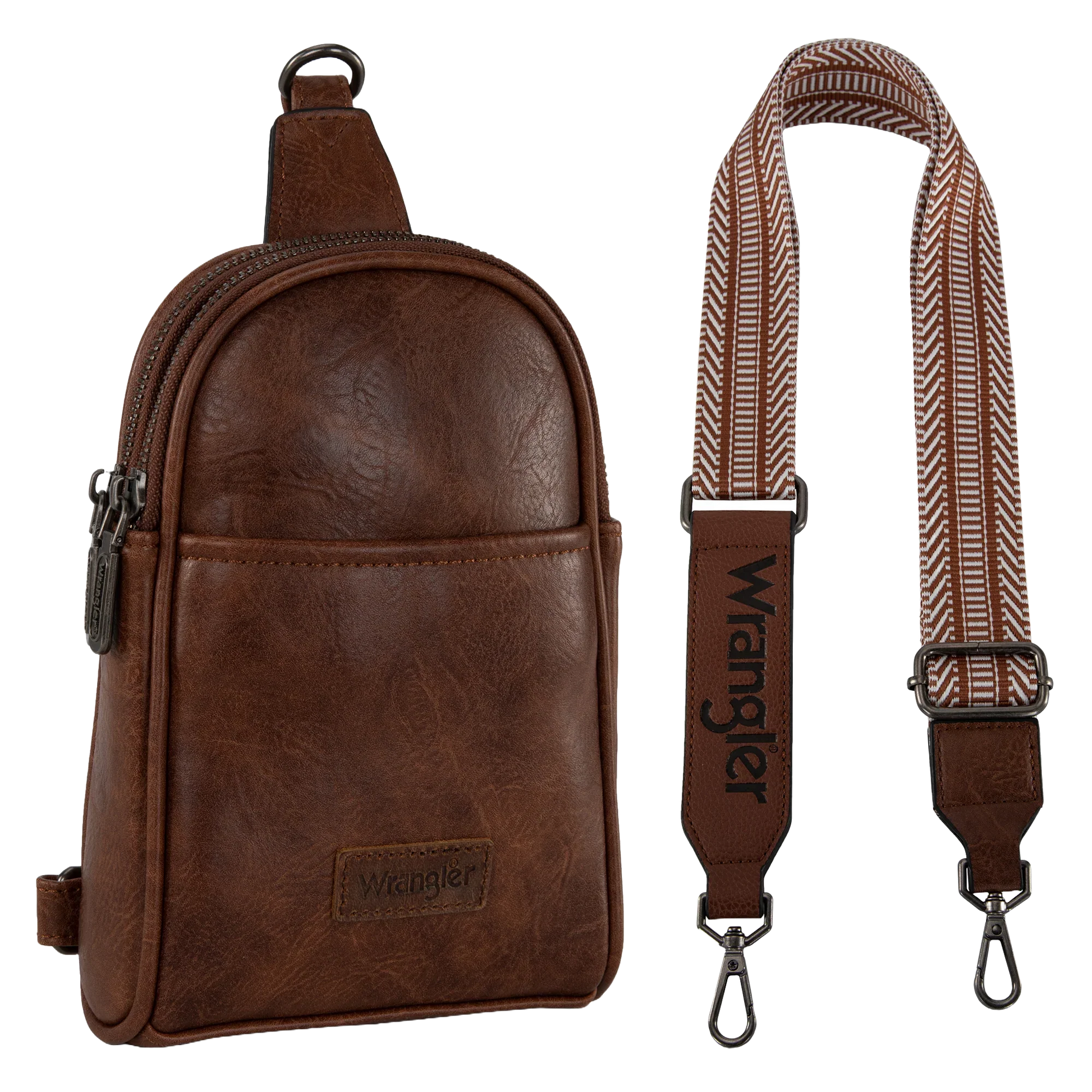 Wrangler Ladies Graphic Dark Brown Sling Crossbody Bag