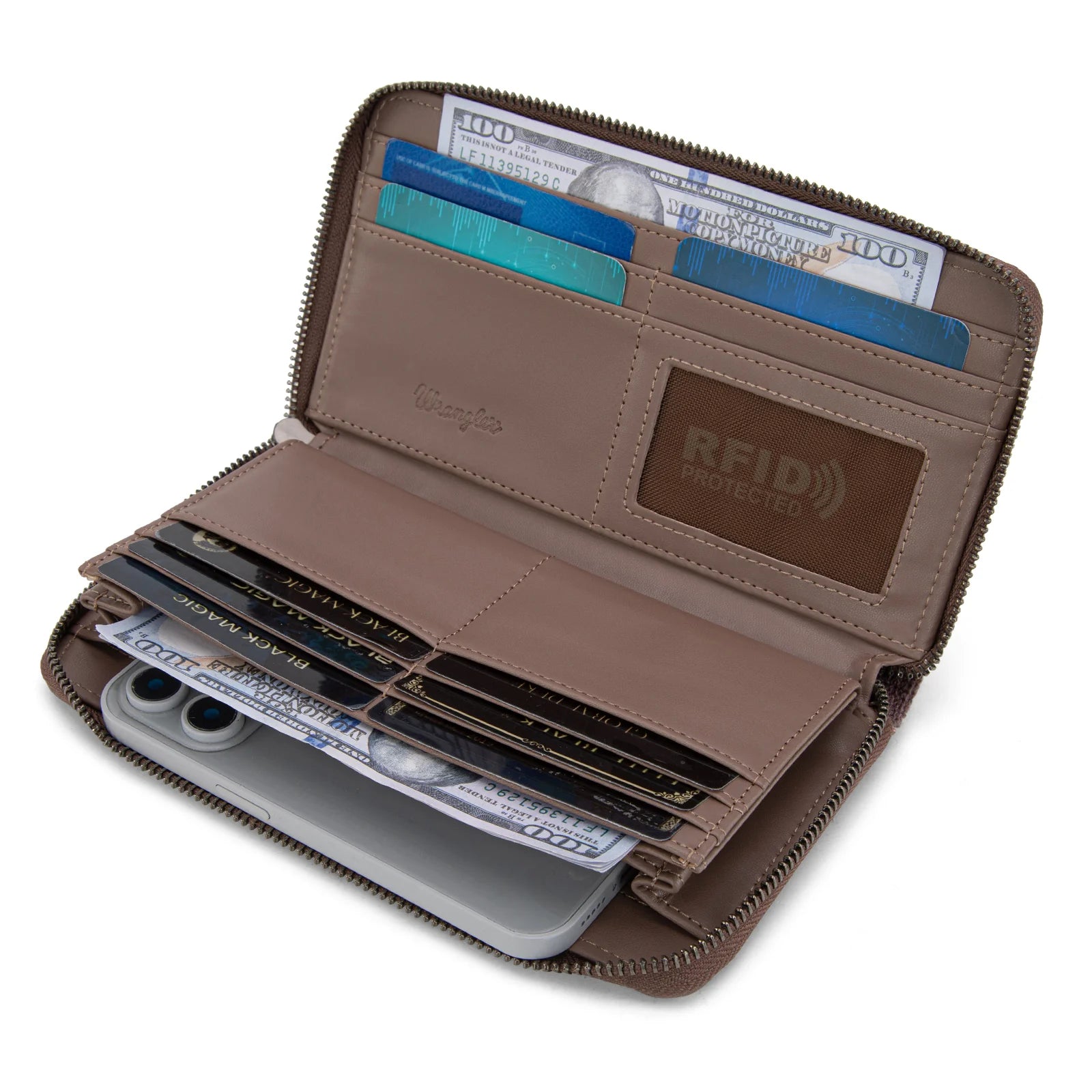 - Single removable strap to convert the wallet into a wristlet